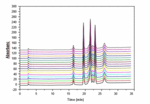 SHBC uses leading large-scale polymer microsphere production technology to ensure batch stability of chromatographic packing materials. We evaluate the performance of each batch of products, such as particle size and distribution. Figure 4 shows the performance of different batches of filler products, indicating that our large-scale production of fillers has good stability. Figure 5 shows the filling of 18 batches